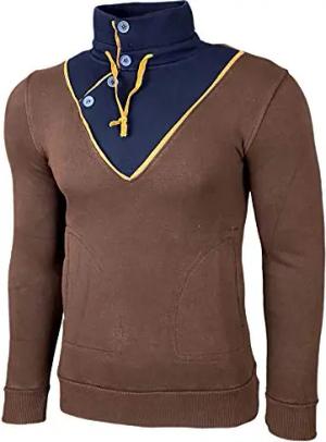 Herren Sweatshirt Pullover Tube-Neck Pulli mit Stehkragen und Knopfverschluss 4005, Farbe:Braun, Größe:M