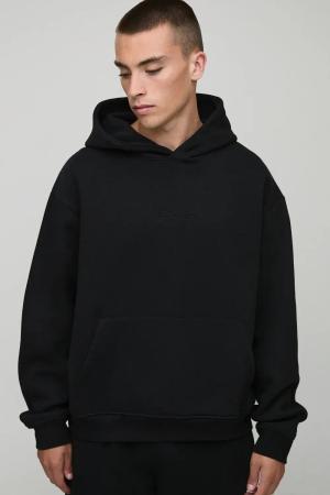 Basic Bm Signature Oversized Boxy Hoodie - Black - M, Black