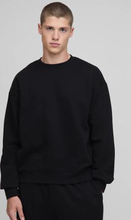 Basic Oversized Boxy Crew Neck Sweatshirt - Black - S, Black