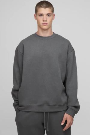 Basic Oversized Crew Neck Sweatshirt - Charcoal - M, Charcoal