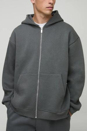 Basic Oversized Zip Through Hoodie - Charcoal - M, Charcoal