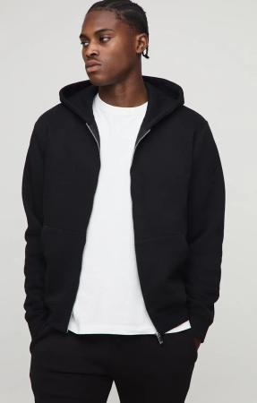 Basic Regular Zip Through Hoodie - Black - Xl, Black