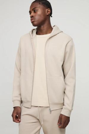 Basic Regular Zip Through Hoodie - Stone - M, Stone