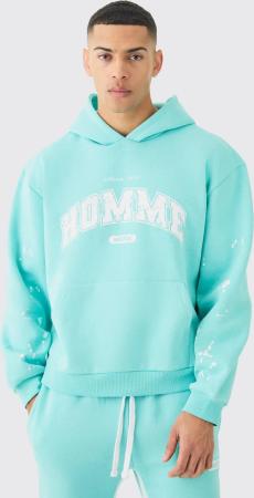Kastiger Oversize Homme Hoodie Mit Farbspritzern - Aqua - M, Aqua