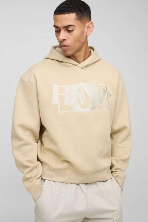 Kastiger Oversize Hoodie Mit Homme-Stickerei - Stone - L, Stone