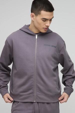Chocolate Oversized Boxy Zip Through Heavyweight Waffle Printed Hoodie - M, Chocolate