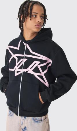 Kastiger Oversize Hoodie Mit Sternen-Print Und Reißverschluss - Black - L, Black