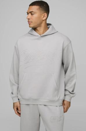 Kastiger Oversize Official Hoodie Mit Kontrast-Naht - Light Grey - L, Light Grey