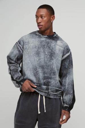 Kastiges Gebleichtes Oversize Sweatshirt - Black - S, Black