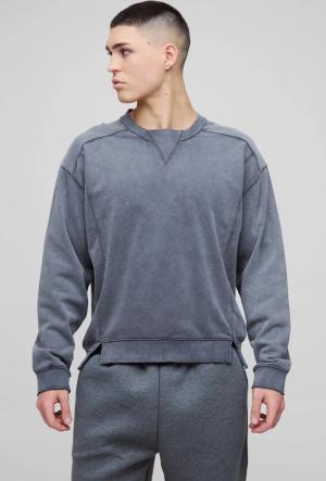 Kastiges Oversize Sweatshirt Mit Naht-Waschung - Charcoal - L, Charcoal