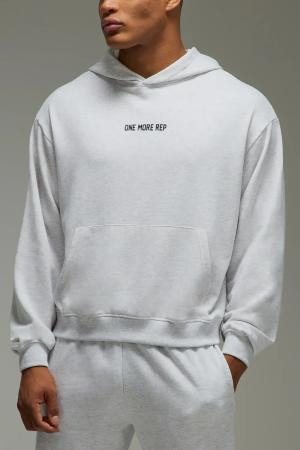 One More Rep Oversized Boxy Hoodie - Grey Marl - L, Grey Marl