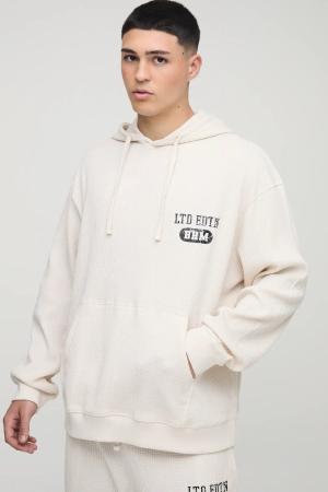 Oversize Hoodie In Waffeloptik - Ecru - M, Ecru
