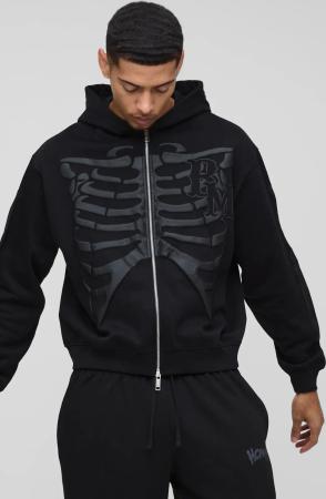 Oversize Hoodie Mit Skelett-Print Und Reißverschluss - Black - S, Black