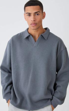 Oversize Rugby Sweatshirt-Poloshirt - Charcoal - L, Charcoal