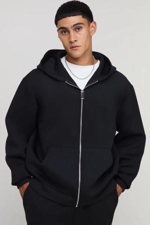 Oversized Bonded Scuba Zip Through Hoodie - Black - S, Black