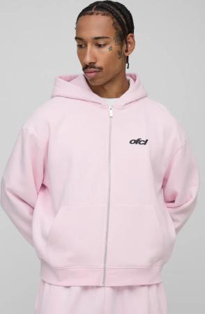 Oversized Boxy Pastel Man Zip Through Hoodie - Pink - S, Pink