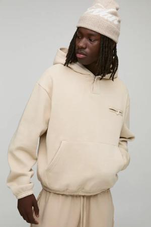 Oversized Pocket Detail Man Tab Hoodie - Stone - M, Stone