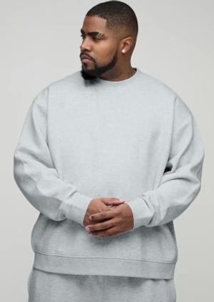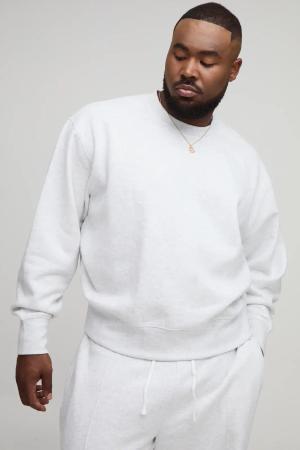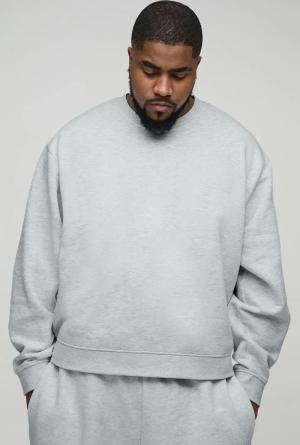 Plus 330Gsm Oversize Basic Rundhals-Sweatshirt - Grey Marl - Xxl, Grey Marl