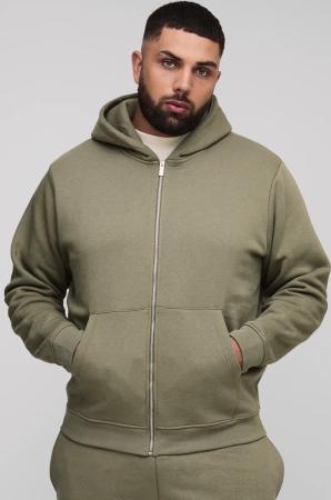 Plus Basic Regular Zip Through Hoodie - Khaki - 5Xl, Khaki