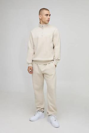 Regular Fit Man Zip Funnel Neck Sweatshirt Tracksuit - Stone - L, Stone