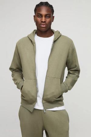 Basic Hoodie mit Reißverschluss - Khaki - S, Khaki