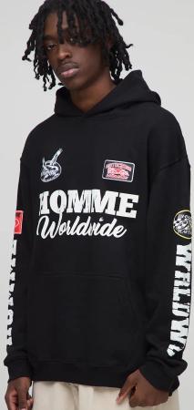 Kastiger Oversize Hoodie mit Official Man Print - Schwarz - S, Schwarz