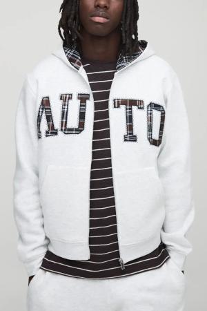 Grauer karierter Hoodie mit Reißverschluss - XL, Grau