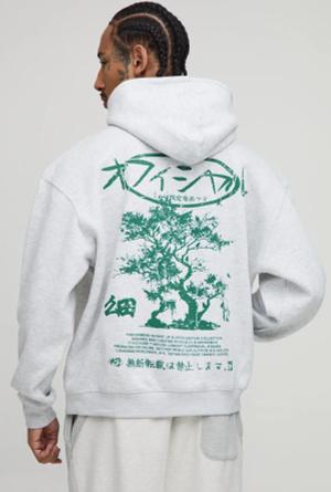 Grauer Oversize Hoodie mit Bonsai-Print - S, Grau