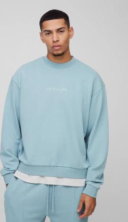 Kastiges Oversize Homme Sweatshirt mit Trichterkragen - Blau - M, Blau