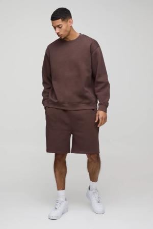 Kurzer Oversize Sweatshirt-Trainingsanzug - Braun - S, Braun