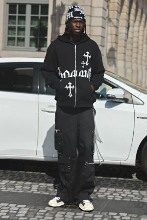 Oversize Hoodie mit Homme Perlen-Verzierung und Reißverschluss - Schwarz - S, Schwarz