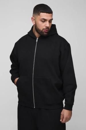 Tall kastiger Oversize Hoodie mit Reißverschluss - Schwarz - XL, Schwarz