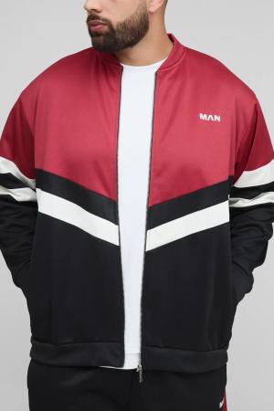 Plus Man Colorblock Trikot-Jacke mit Trichterkragen - Schwarz - 2XL, Schwarz