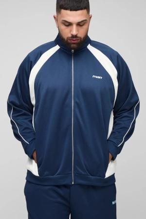 Plus Man Colorblock Trikot-Trainingsoberteil mit Trichterkragen - Blau - 2XL, Blau