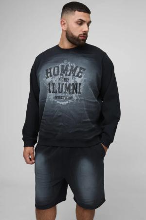 Plus Sweatshirt mit Homme-Print & Shorts - Schwarz - 2XL, Schwarz