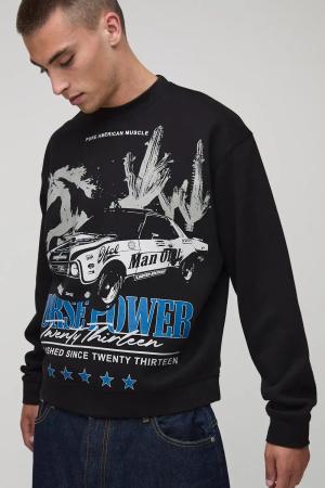 Schwarzes kastiges Oversize Sweatshirt mit Pferde-Print - XL, Schwarz