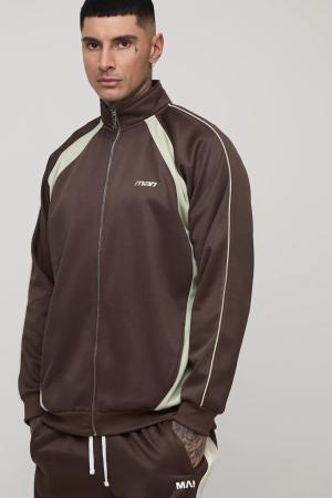 Tall Man Colorblock Trikot-Jacke mit Trichterkragen - Braun - 2XL, Braun