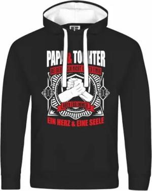 Herren Kapuzenpullover mit Aufdruck Papa und Tochter EIN Herz und eine Seele - Familie Gemeinschaft, Größe:L, Farbe:schwarz/weiße Kapuze