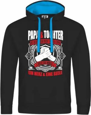 Herren Kapuzenpullover mit Aufdruck Papa und Tochter EIN Herz und eine Seele - Familie Gemeinschaft, Größe:XXL, Farbe:schwarz/Blaue Kapuze