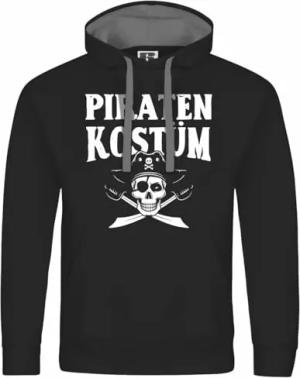 Herren Kapuzenpullover mit Aufdruck PIRATENKOSTÜM - Karneval Verkleidung, Größe:XXL, Farbe:schwarz/graue Kapuze