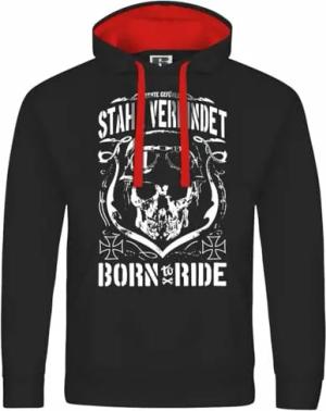 Herren Kapuzenpullover mit Aufdruck Stahl verbindet - Ride Bike, Größe:XL, Farbe:schwarz/rote Kapuze