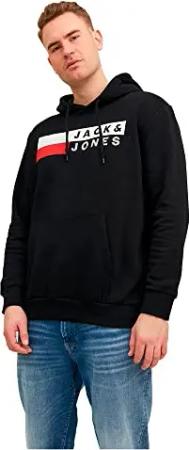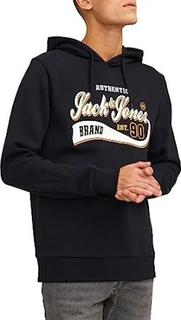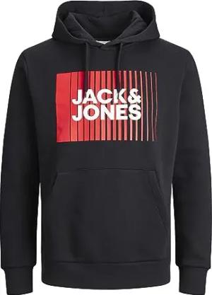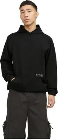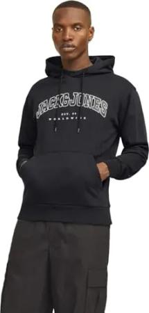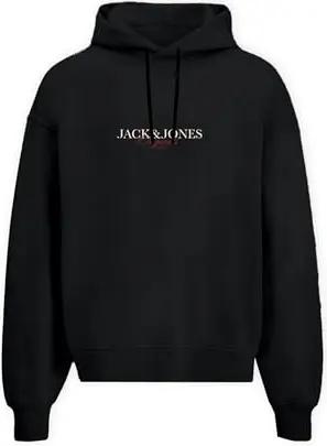 JACK&JONES Herren JORVESTERBRO Sweat Fleece Hood Kapuzenpullover, Black/Print:Without Back Print, Large