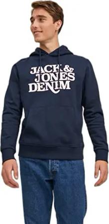 Herren Regular Fit Kapuzenpullover JJEJEANS Sweat Hood NOOS 12137057, Einfarbig, Gr. Small, Blau (Navy Blazer Detail:Reg Fit)