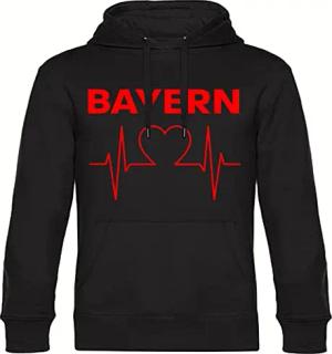Kapuzen Sweatshirt - Bayern - Herzschlag - Druck rot - Hoodie Größe XL schwarz