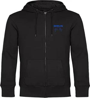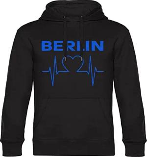 Kapuzen Sweatshirt - Berlin blau - Herzschlag - Druck blau - Hoodie Größe S schwarz