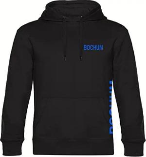 Kapuzen Sweatshirt - Bochum - Brust & Seite - Druck blau - Hoodie Größe S schwarz