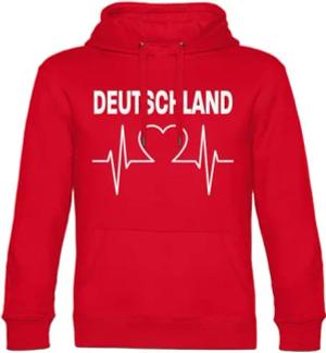 Kapuzen Sweatshirt - Deutschland - Herzschlag - Druck weiß - Hoodie Größe 3XL rot