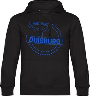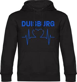 Kapuzen Sweatshirt - Duisburg - Herzschlag - Druck blau - Hoodie Größe L schwarz