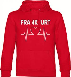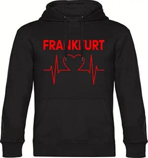 Kapuzen Sweatshirt - Frankfurt - Herzschlag - Druck weiß - Hoodie Größe S rot