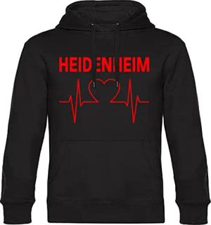 Kapuzen Sweatshirt - Heidenheim - Herzschlag - Druck rot - Hoodie Größe M schwarz